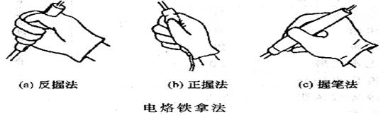 電烙鐵(tiě)的握法分爲(wèi)三種。