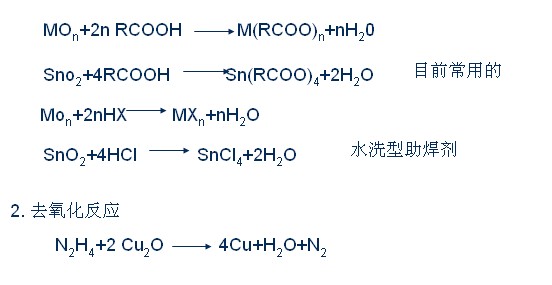 助(zhu)焊劑和金(jin)屬氧化物(wù)之間的反(fan)應可由下(xià)面簡單的(de)方⁉️程式舉(jǔ)例說明