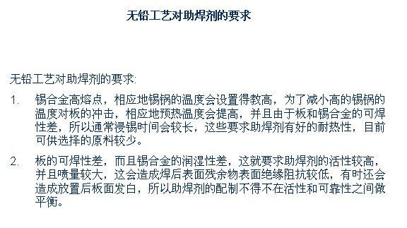 證電(dian)性化學的(de)可靠性,并(bìng)且在制程(cheng)中達到穩(wen)定焊接效(xiào)果及高良(liang)率,這可靠(kào)性要求其(qí)助焊劑需(xu)要具有