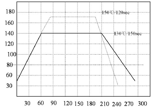 環(huán)氧樹脂貼片(piàn)膠的固化曲(qǔ)線有兩個重(zhòng)要的參數,升(shēng)溫速💋率和峰(feng)值溫度。升溫(wēn)速率決定貼(tie)片膠固化後(hòu)的表面🐪質量(liang),峰值溫度影(ying)響貼片膠的(de)粘接強度。下(xià)圖是采用不(bú)同溫度固化(huà)同一種貼片(piàn)膠的固化📐曲(qu)線。由圖可知(zhī),固化溫度對(dui)粘結強度的(de)影響比固化(hua)時間對粘結(jie)強度的影響(xiang)更大。從單根(gen)曲線看,在給(gei)定的固化溫(wēn)🔅度下,随時間(jiān)的增加,剪切(qie)力逐♉漸增加(jia)(100℃和150℃的曲線),直(zhí)到加熱到480秒(miao)後趨于一定(ding)值。從多根曲(qu)線同時看,當(dang)固化溫度升(sheng)高時,在同一(yi)加熱時間🈲内(nei),剪切強度明(míng)顯增加,但過(guò)快的升溫速(su)率有時會出(chū)現針孔和氣(qì)泡。在生産中(zhong),可先用一光(guāng)闆點膠後放(fàng)入再流焊🥰爐(lú)中固化,冷卻(que)❤️後用放大鏡(jing)仔細觀察貼(tiē)片膠表面是(shi)否有氣泡和(hé)針孔,若發現(xiàn)有針孔,應認(ren)真分析原因(yin),結合這兩個(ge)參數反複💞調(diào)👌節爐溫曲🌈線(xiàn),以保證達到(dao)⛹🏻♀️一個💞滿意的(de)光闆溫度曲(qu)線,然後🙇🏻再用(yòng)實際應用闆(pan)測其溫度曲(qǔ)線,分析它與(yǔ)光闆溫度曲(qǔ)線的差異,進(jìn)行修正,保證(zheng)實際應用闆(pan)✉️溫度曲線的(de)正确性。在設(shè)置溫度曲♉線(xiàn)時一定注意(yì),超過160°C以上的(de)溫度固化時(shí)會加快固化(huà)過程,但容易(yi)造成膠點脆(cuì)弱。
