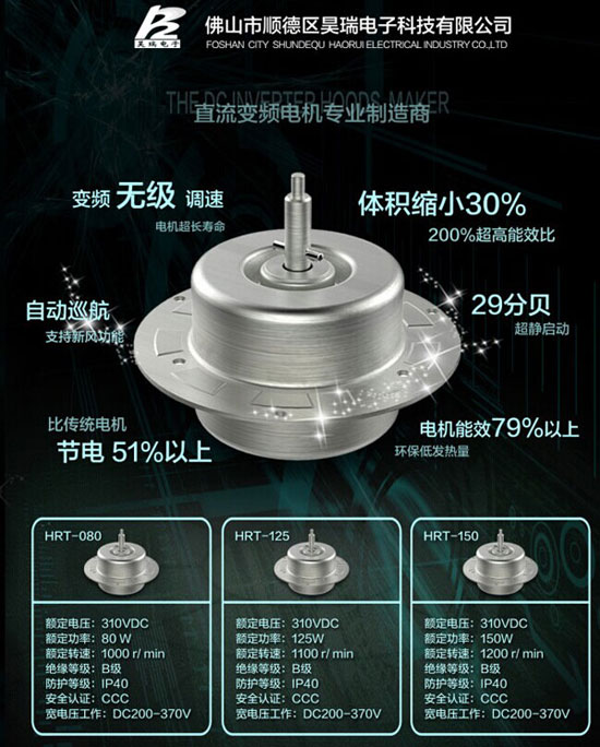 爲響應國家(jiā)電機效能提升(sheng)計劃,我司根據(ju)抽油煙機存在(zài)的能💰效比低,轉(zhuǎn)速慢,形成負壓(yā)不高等問題,聯(lian)合相關科研院(yuàn)所🈲,行業🚶專家,研(yan)發生産出适合(hé)抽油煙機系統(tong)特點的直流變(bian)頻電動機。