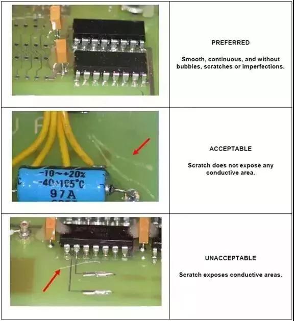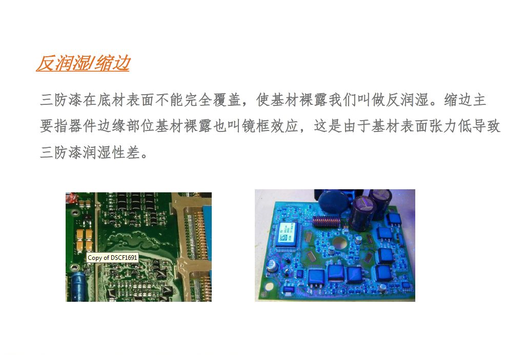 (3)PCBA表面(miàn)、容器、三(sān)防漆中(zhong)混有水(shui)分;
