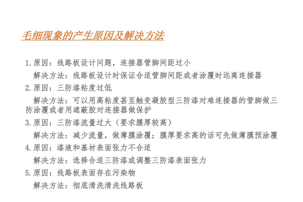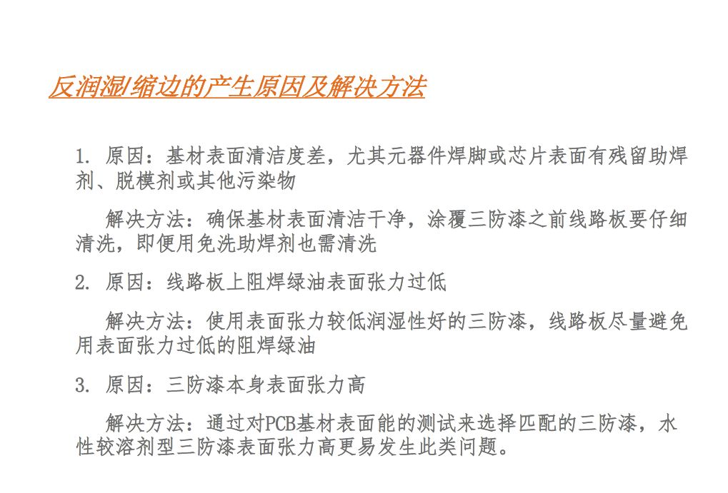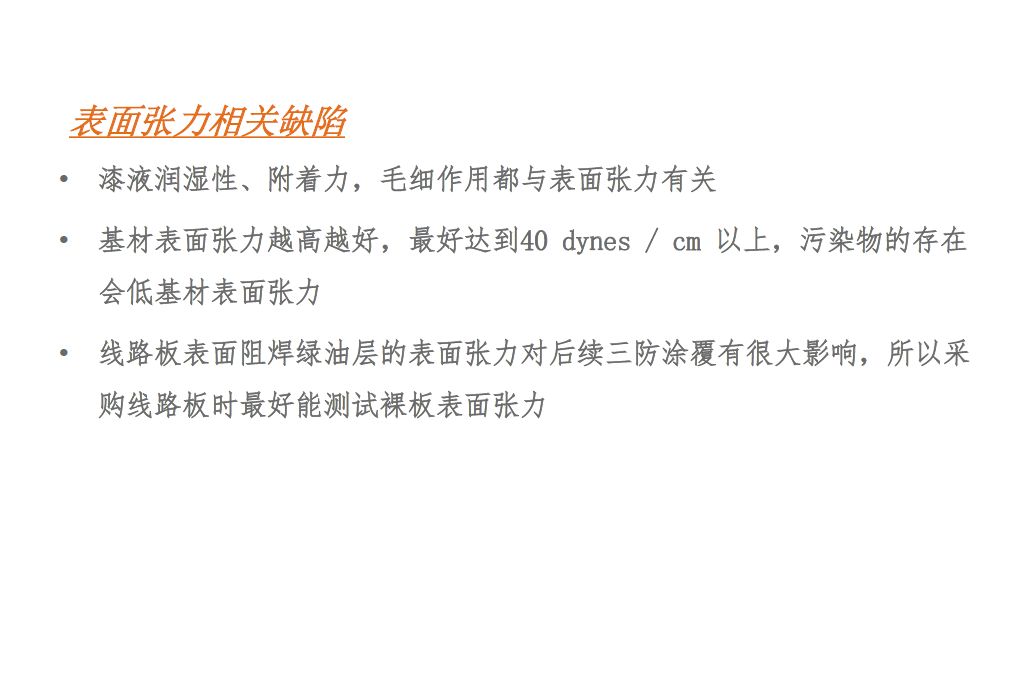 5.底材(cái)與三防(fang)漆的表(biao)面張力(li)不合适(shi)。