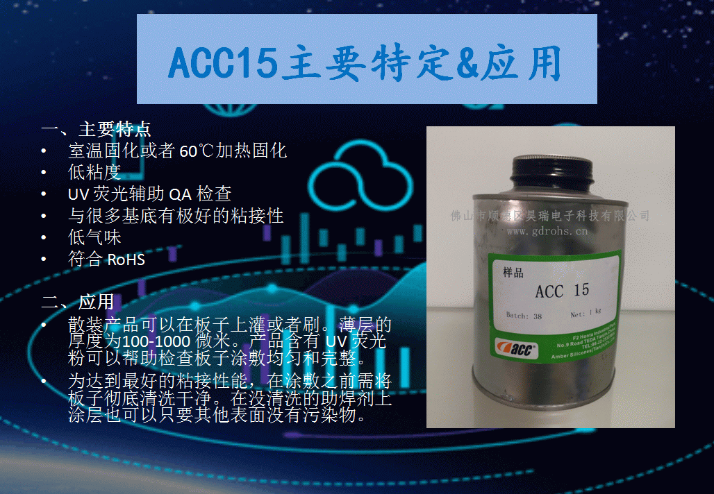 2、不含溶劑丙(bing)烯酸樹脂三防漆(qī)特點:UV固化,可在幾(ji)秒到十幾秒表幹(gan),顔色透明,質地較(jiào)硬,防化學腐蝕和(hé)耐磨性也非常好(hǎo)。用紫外線來初始(shi)固化的三防漆,不(bu)需用溶劑。它們不(bú)燃燒,不含揮發性(xing)有機化合物,完全(quan)符合現行和拟議(yì)中的環保法規。它(tā)們可提供很好的(de)耐化學性能生産(chǎn)率而大大降低了(le)産品的成本。