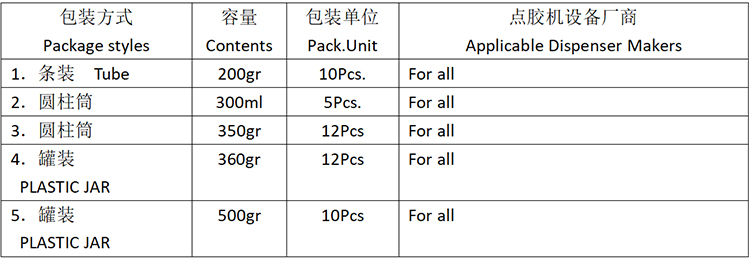 在波(bo)峰焊前将(jiāng)表面貼裝(zhuāng)元件粘接(jiē)在印刷電(diàn)路闆上,适(shì)合于孔版(bǎn)印刷(刮膠(jiāo))等需要低(dī)吸濕性貼(tiē)片膠所場(chang)合,防止在(zai)固化的膠(jiāo)粘劑中形(xíng)成孔隙。