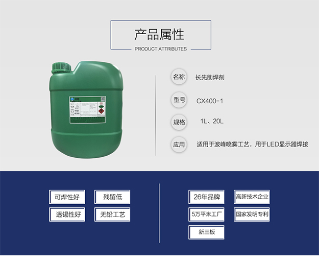 CX400-1屬于免(mian)清洗助焊劑(jì),适用無鉛工(gōng)藝,在噴霧波(bō)峰焊應用領(ling)域有優異的(de)表現。助焊劑(jì)體系的活性(xing)經過特别設(shè)計,能顯✏️著減(jian)小闆與焊料(liao)的剪切力和(hé)焊料🌈經波峰(fēng)後焊球的産(chan)生 . 焊接力強(qiang)特别在鍍銀(yín)的電路闆上(shang)有着優良焊(hàn)接效果。助焊(han)劑中較低固(gu)體含量及其(qi)内部活性機(ji)理保證了電(diàn)路闆🌈焊後殘(cán)留物極少,而(ér)且電路闆表(biao)面幹燥、幹淨(jìng)。在無特殊需(xu)求條件下,可(kě)免除清洗工(gōng)序,進而節約(yuē)制造商的🌈生(sheng)産費用♉。